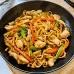 And there you have it! A delightful chicken stir fry with noodles that’s not just tasty but also visually stunning! Serve immediately garnished with chopped green onions for that extra flair.